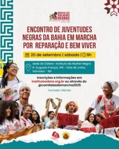 “No encontro debatemos sobre a Marcha que se aproxima e refletimos, enquanto juventude, sobre as diferentes esferas que nos atingem, além de pensar quem nos deve e de que forma precisamos cobrar do Estado que nos proteja de fato. A união das jovens de Salvador e de Cachoeira me fez perceber o quanto precisamos nos aquilombar cada vez mais e construir estratégias contra o sistema.”